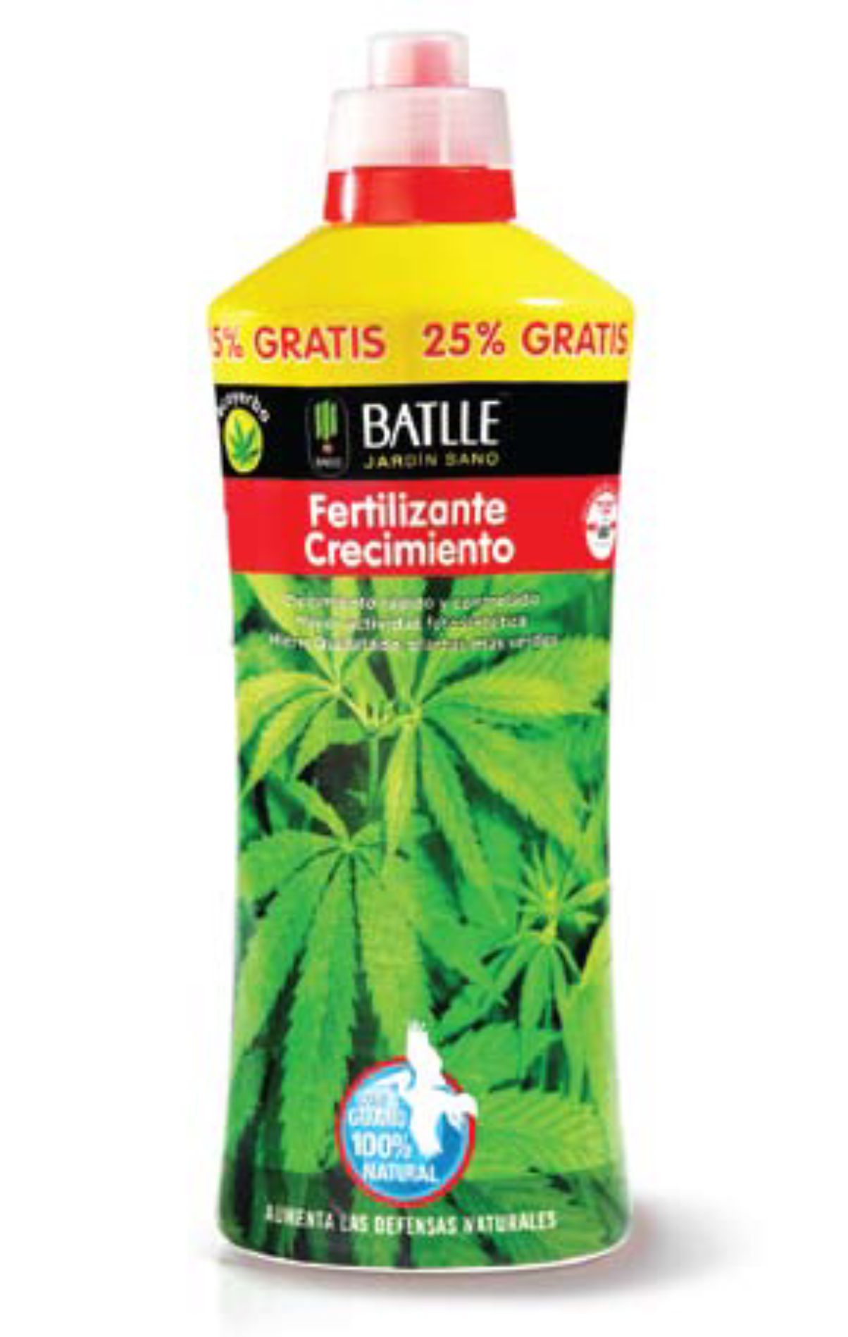 El Fertilizante Crecimiento BATLLE es un complejo nutritivo de altaasimilación, en base a aminoácidos naturales y guano 100% ecológico,pensado para proporcionar un rápido y equilibrado crecimiento y desarrolloa la planta, aumentando su actividad fotosintética, con lo que se consiguenparedes celulares más gruesas y como resultado plantas más vigorosas.Su formulación de base orgánica y hierro mejora las defensas naturales ymantiene las plantas verdes y fuertes.Composición: Solución de abono NPK (Mg) 11-7-8 con micronutrientes, 5% deaminoácidos naturales, 2% de guano natural.Dosis: Aplicar como abono radicular, diluyendo 5 mlde abono por litro de agua.
