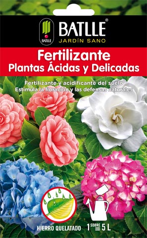 El Fertilizante Plantas Ácidas y Delicadas BATLLE es un complejo nutritivo de alta asimilación, pensado para mantener el pH ácido en el medio de cultivo de este tipo de plantas. Su completa composición con macro y micro nutrientes favorece un desarrollo óptimo, estimulando una cuantiosa y abundante inducción floral. Aplicable en todas las condiciones: interior, terraza y jardín.Composición: Abono CE. Solución de abono NPK 6-5-8 con micronutrientes, extracto natural de algas y hierro quelatado.Dosis: Aplicar como abono radicular, diluyendo 5 ml de abono por litro de agua.