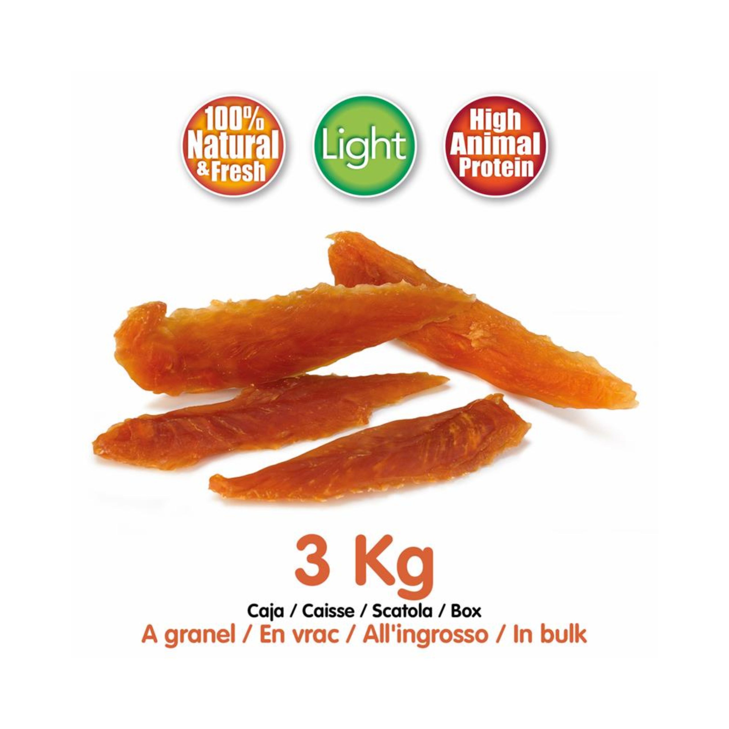 Snack Arquivet Filete de Pato 1kg Snack filete de pato sabroso y delicioso, ideal para perros de todas las razas y tamaños.Es un alimento complementario totalmente natural, con un alto nivel de proteína.Este alimento es light ideal es perfecto para aquellos perros que siguen una dieta reducida en grasas, o simplemente para mantener un peso ideal y equilibrado en nuestras mascotas. La bolsa de 1kg proporciona una gran cantidad, perfecta para satisfacer a tu mascota durante un largo periodo de tiempo.La bolsa contiene un cierre hermético para un mejor mantenimiento del alimento.Arquivet ofrece una amplia gama de snacks naturales y sabrosos para recompensar a tu mejor amigo peludo. ¿Quieres tener una gran reserva de snacks para tu mascota?Los sacos de 1kg de snack de arquivet te ofrece la posibilidad de ofrecerle a tu mascota todos los días snacks naturales y sabrosos cada vez que precise ser recompensado por su buen comportamiento. Sus CaracterísticasBolsa grande para un largo periodo.Bajo en grasas.100% NaturalSnack lightAlta proteína animal. El formato disponible de la bolsa es de 1kg. Modo de empleoSuministrar como un premio en cualquier momento, como parte de una dieta equilibrada.Los perros deben estar bajo supervisión mientras comen.Mantener en lugar fresco y seco y cerrado con el cierre hermético que trae la bolsa.Suministrar siempre agua en abundancia. Arquivet natural dog snacks sabrosos e irresistibles, perfectos para tu mascota. Ingredientes Ingredientes PrincipalesCarne de pato 91%, proteinas vegetales 2.5 %, glicerina 3.3%, sorbitol 3%, sorbitol 3% y sal 0,2%. Analítica Proteínas 56 % Grasas 4.5 % Fibras 0.5 % Cenizas 3.5 % Humedad 18 %