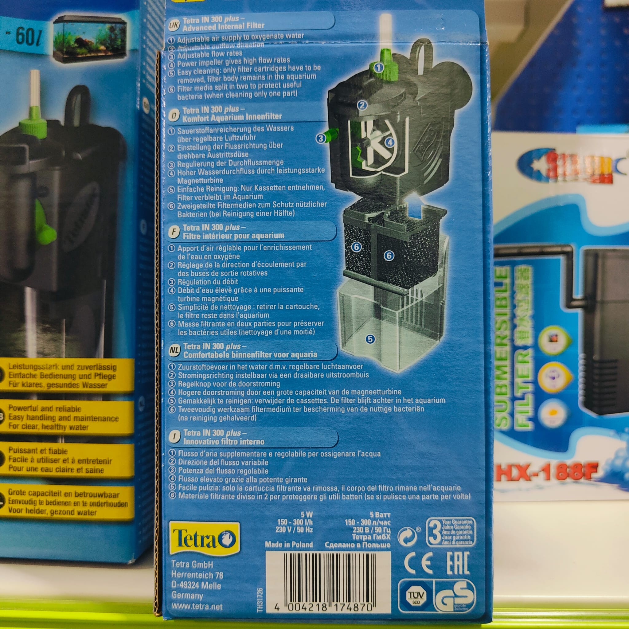 Filtros interiores potentes y confortables para la filtración mecánica, biológica y química.* Todos los filtros interiores tienen cámaras filtrantes divididas en dos* Así, durante la limpieza, una esponja filtrante puede permanecer siempre en la cámara filtrante – minimizando la pérdida de las útiles bacterias* Durante la limpieza, el aparato permanece en el acuario* Con un práctico dispositivo para la extracción del medio filtrante que permite un manejo limpio* Regulación continua de la velocidad de flujo para adaptarla al acuario* Tobera de salida girable en 180°* Aporte adicional de oxígeno mediante sistema Venturi regulable* Diseño elegante y compacto, necesita poco espacio* Fácil de colocar mediante ventosas de gran estabilidad* Esponja filtrante biológica y filtro de carbón activo disponibles como repuestos* Homologado por el TÜV / GS, certificación CE* 2 años de garantíaINFORMACION TECNICATETRATEC IN 1000Rendimiento: 500-1000Volumen del acuario: 120-200 lPotencia absorbida: 14 vatiosNumero de camaras filtrantes dobles: 2
