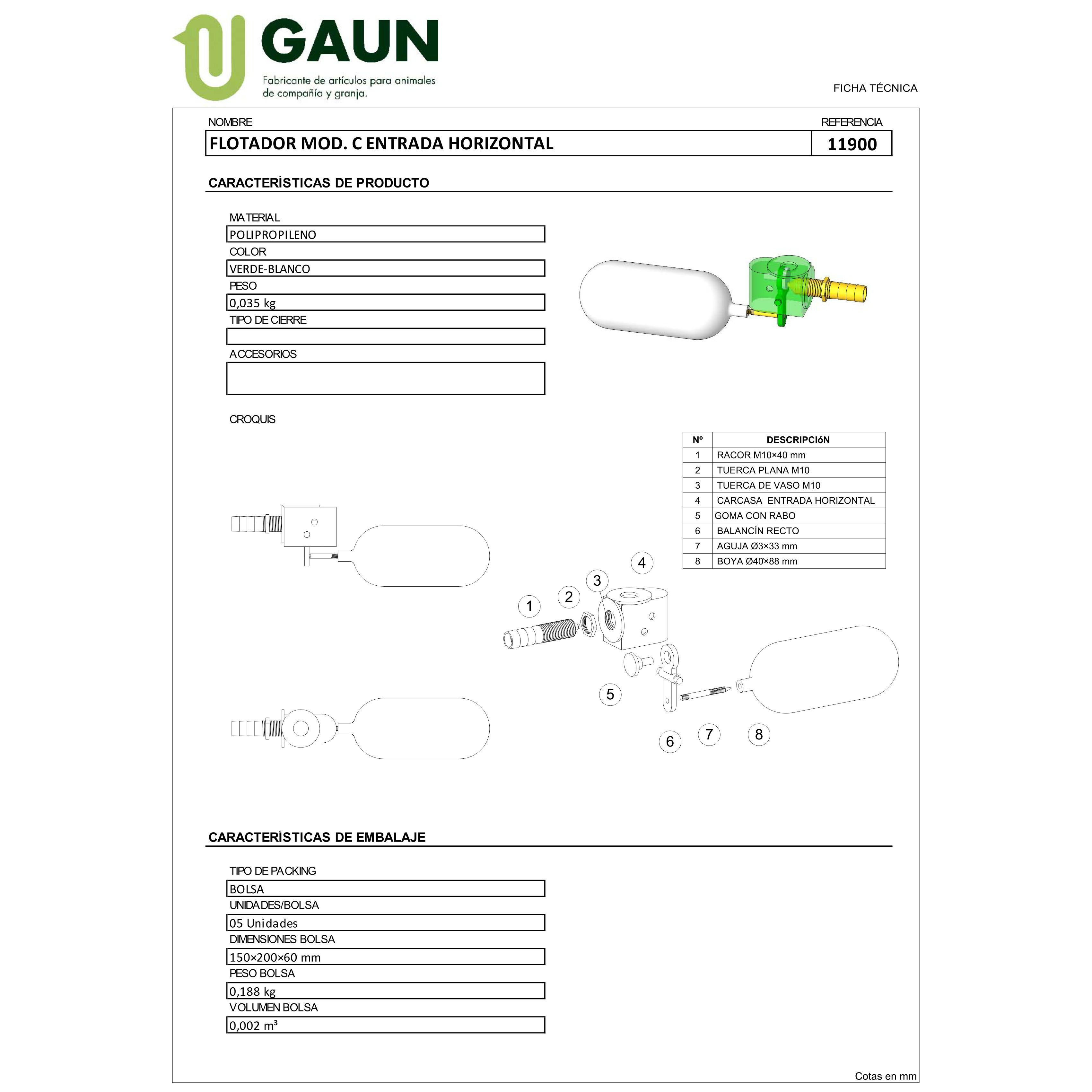 FLOTADOR MODELO C ENTRADA HORIZONTAL