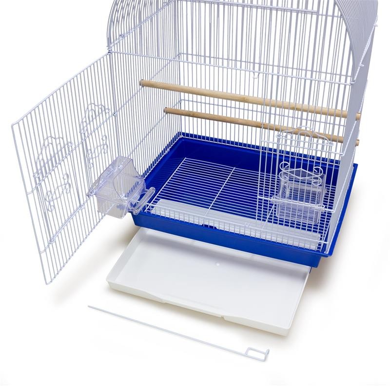 Jaula de gran tamaño dónde los pájaros pueden vivir cómodamente. La jaula viene desmontada. Dispone de una puerta frontal para acceder fácilmente a su interior. Se incluyen 4 comederos que se pueden colocar fácilmente y 2 barras posaderas de madera. En la parte de abajo hay una bandeja de plástico extraíble para facilitar la limpieza de la jaula. En el caso caso de que se quiera transportar dispone de un asa en la parte superior.