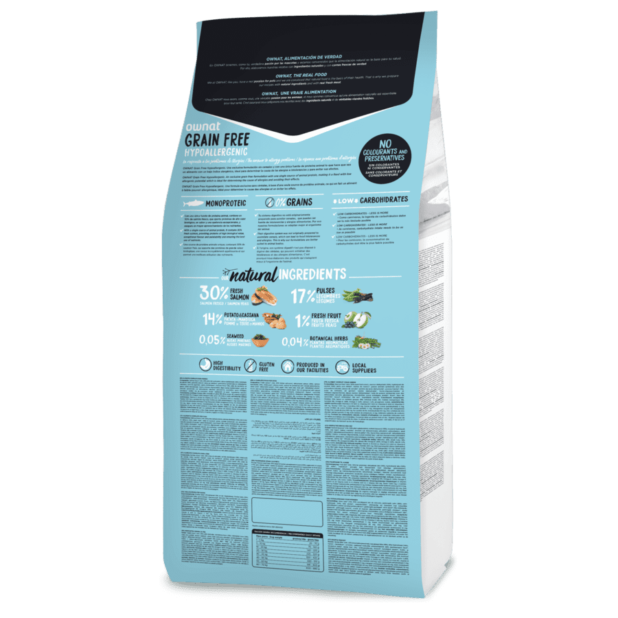 El Grain Free (sin cereales) reproduce lo más exactamente posible la dieta que seguiría un perro en libertad en su propio entorno natural y para la cual está preparado su organismo: sin cereales, con altos niveles de proteínas y bajos niveles de carbohidratos.