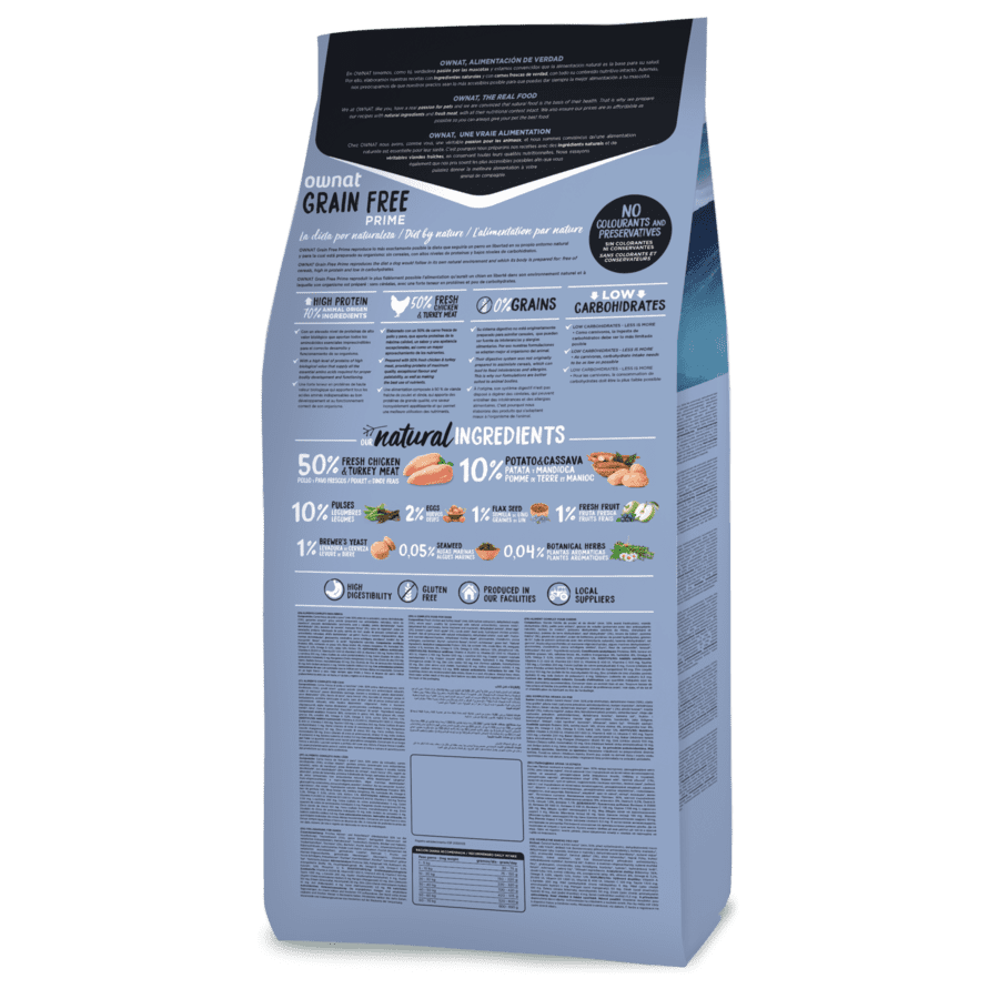 El Grain Free (sin cereales) reproduce lo más exactamente posible la dieta que seguiría un perro en libertad en su propio entorno natural y para la cual está preparado su organismo: sin cereales, con altos niveles de proteínas y bajos niveles de carbohidratos.
