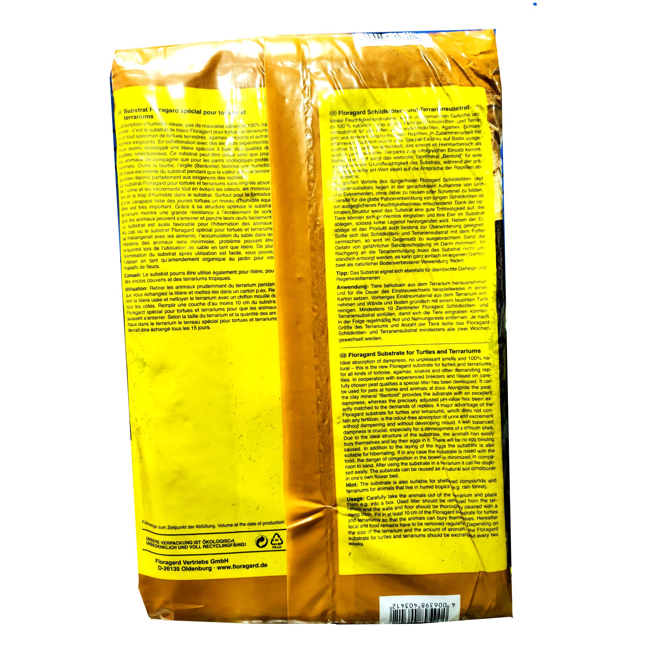 – Material especial 100% natural para preparar el hábitat de tortugas de campo, serpientes y otros reptiles exigentes- Absorbe la humedad a la perfección y neutraliza los olores desagradables- Su óptima estructura ofrece una buena firmeza a las pisadas- Adecuado tanto para la puesta de huevos como para la hibernación de los animales- Minimiza el riesgo de congestión y de retención de huevos.El nuevo sustrato para tortugas y terrarios de Floragard absorbe la humedad, impide que se generen malos olores y es 100% natural. Es óptimo para el hábitat de toda clase de tortugas terrestres, agámidos, serpientes y otros reptiles exigentes. Basada en turbas de calidad escogida, esta mezcla se ha elaborado en colaboración con el zoológico de Berlín. Además contiene arcilla bentonita, que proporciona al sustrato un nivel de humedad óptimo, al mismo tiempo, un pH ajustado con precisión, satisface las exigencias de los reptiles. Es idóneo para la puesta de huevos y la hibernación.